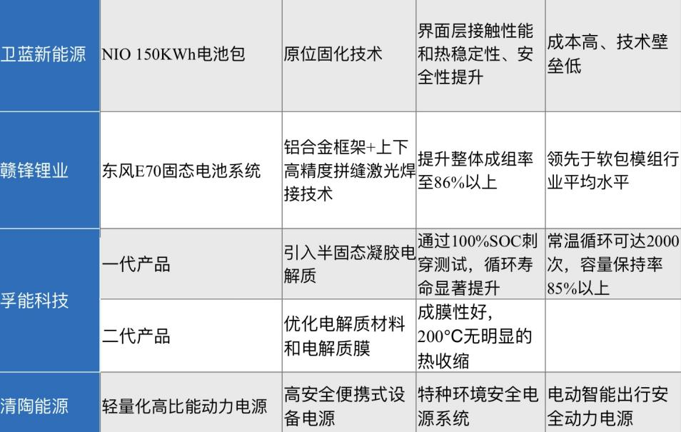 孚能科技、国轩高科等领跑企业也在积极进行固态及半固态电池的技术研发,并且取得了显著成效,均进入了产业化阶段。