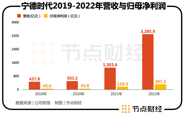 日前,宁德时代公布其2022年业绩。年报显示,去年公司实现营收达到3286亿元,较上年同期增长152.07%;归母净利润为307亿元,较上年同期增长92.89%。无论是营收还是归母净利润,宁德时代依旧保持了2021年高涨的态势。