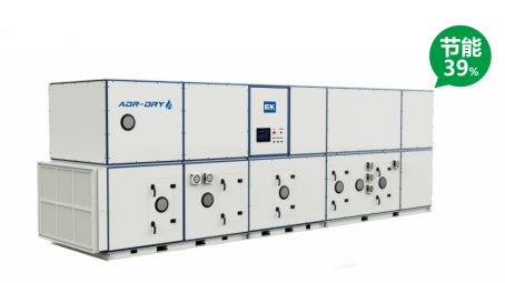 以ADR-DRY X2一体化复合型双转轮除湿机为例,该机组采用双转轮复叠控制技术,最低露点可达-80℃,适用于电芯烘烤、注液、封口等低露点工艺车间。机组采用专利一体化集成控制技术、TITAN高强度净化箱体结构,直膨深度除湿DP5℃,相比常规冷冻水+单转轮除湿机节能率为39%。