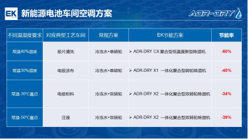 EK双罗“R”机组的强劲组合,可有效解决机房建设成本高、周期长,除湿系统能耗高、除湿机再生风加热耗能多等行业痛点,助力锂电池企业进一步提升除湿效率,降低企业运行成本。